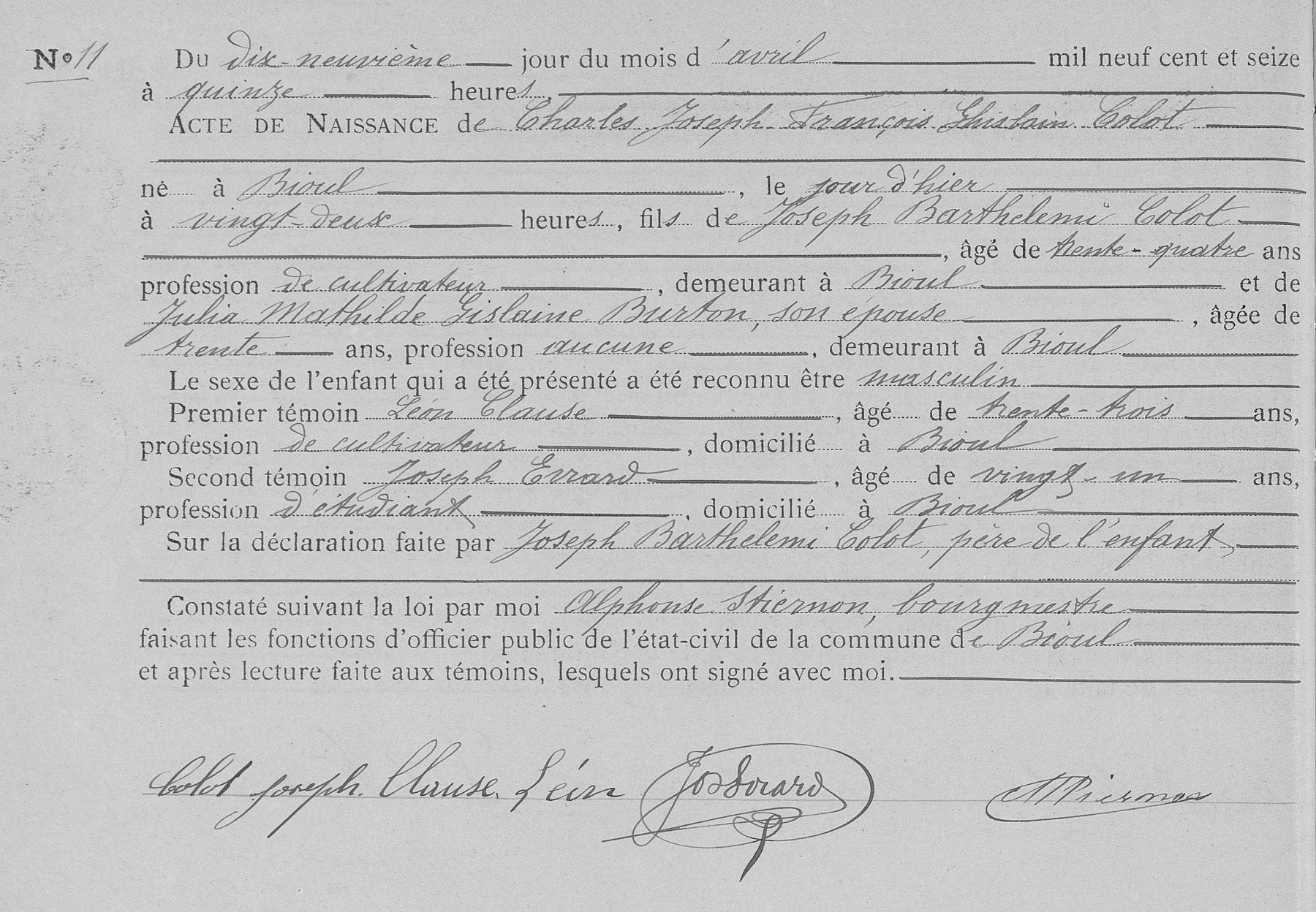 Acte de naissance à Bioul, NA, BE (Source [358]) (Télécharger