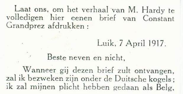29.01.1917, Constant GRANDPREZ vient à Liège en train. Il passe devant chez
