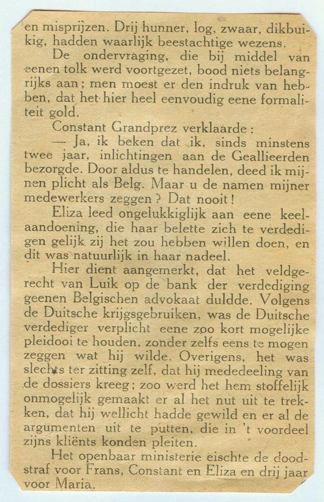 GRANDPREZ et Marie Hubert, l'épouse de André GREGOIRE sont condamnés à quinze
