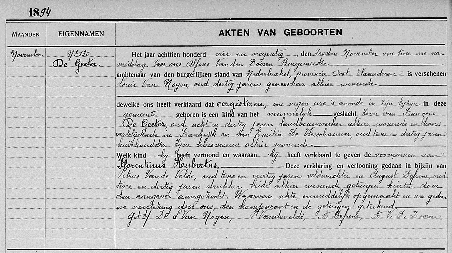 Geboorteakte te Nederbrakel, BE (Bron [358])