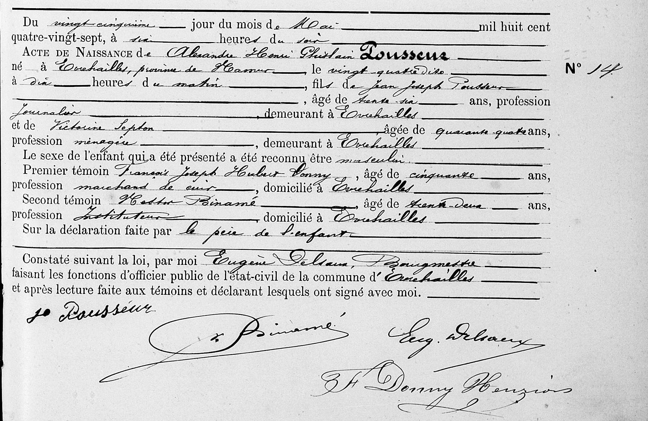 Acte de naissance à Evrehailles, NA, BE (Source [358])