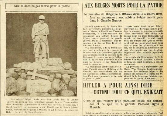 "Aux Belges morts pour la patrie", article du journal "La Liberté",