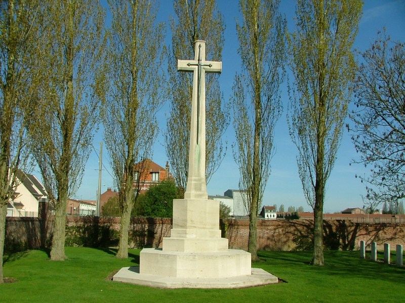 Localisation - Ligging: Cimetière militaire britannique de la cité Bonjean, Avenue Roger SALENGRO. Britse militaire begraafplaats "Cité Bonjean", Avenue Roger SALENGRO. Coordonnées GPS - GPS-coördinaten: +50°41'9", +2°51'50" Description - Beschrijving Deux Belges reposent dans ce cimetière. Twee Belgen rusten op deze begraafplaats. Voir les noms des soldats inhumés dans ce cimetière - Zie namen van de soldaten begraven op deze begraafplaats |