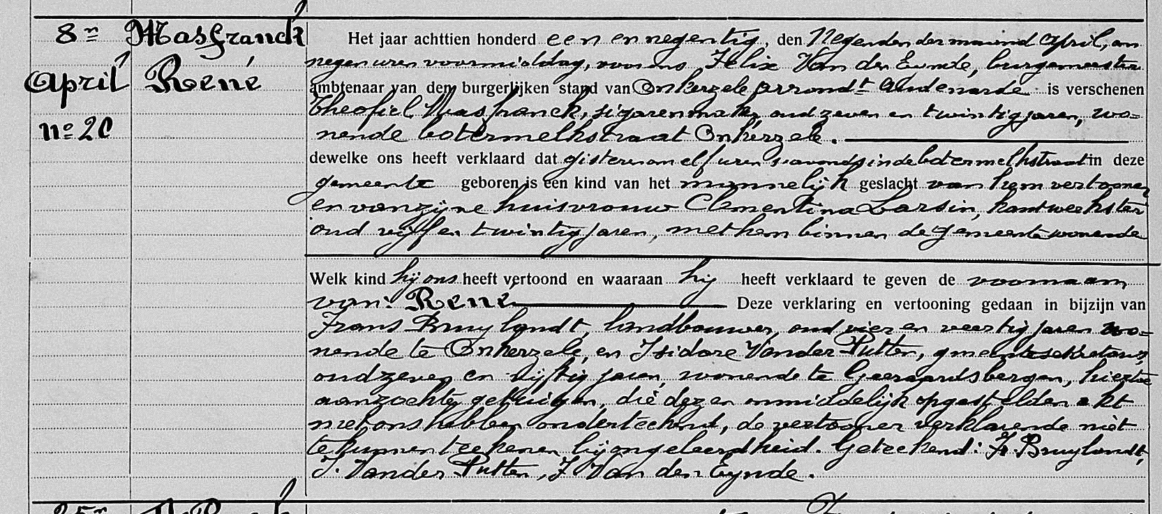 Geboorteakte te Onkerzele, OV, BE (Bron [358])