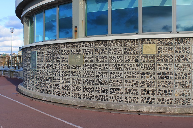 l'extrémité sud-ouest sur le mur de la rotonde formant