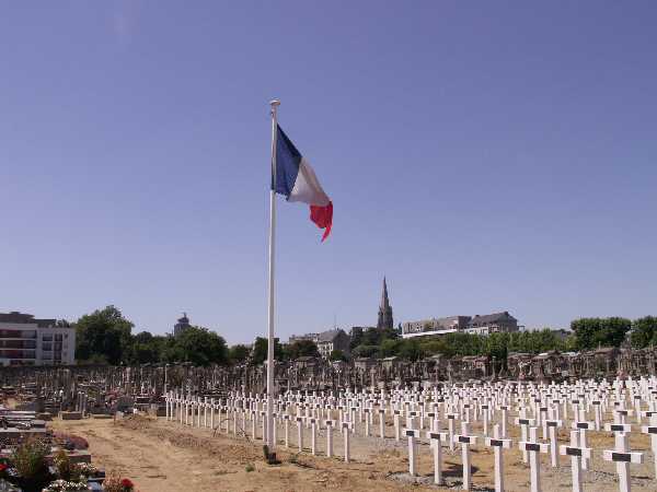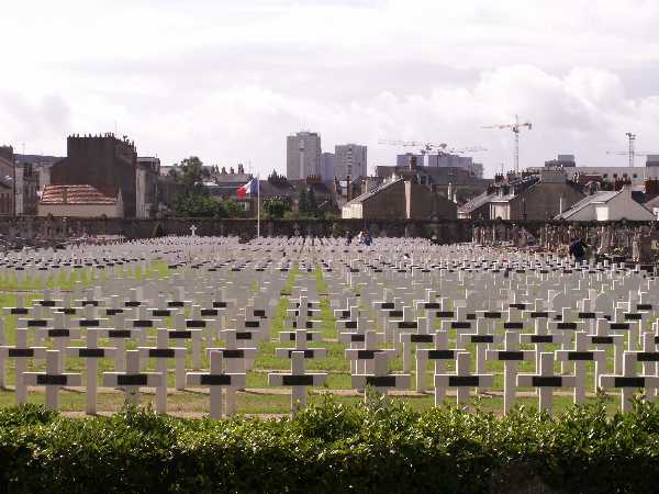 Localisation - Ligging: Cimetière de la Bouteillerie, rue Gambetta. Begraafplaats "de la Bouteillerie", rue Gambetta. Coordonnées GPS - GPS-coördinaten: +47° 13' 19.05", -1° 32' 23.82" Description - Beschrijving: Deux soldats belges reposent dans ce cimetière, Jérôme ES et Georges DECKMYN. Twee Belgische soldaten rusten op deze begraafplaats, Jérôme ES en Georges DECKMYN Plus d'informations concernant ces personnes - Bijkomende informatie over deze gesneuvelden |