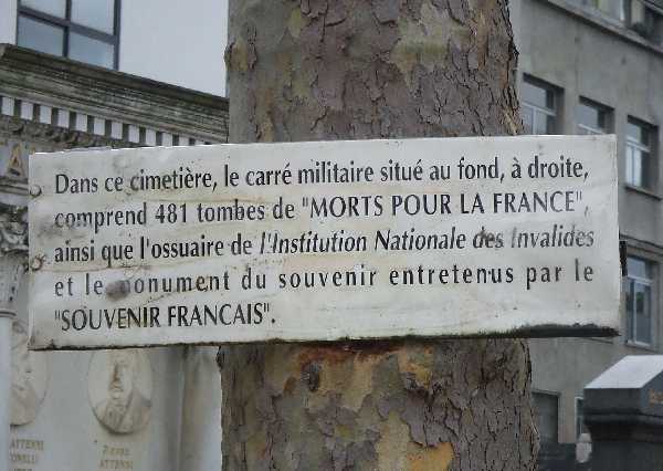Localisation - Ligging: Carré militaire français du cimetière de Vaugirard, 320 rue Lecourbe. Frans militair ereperk op de begraafplaats van Vaugirard, 320 rue Lecourbe. Coordonnées GPS - GPS-coördinaten: 48° 50' 16.04" N, 2° 17' 6.41" E Description - Beschrijving Deux Belges reposent dans le carré militaire du cimetière de Vaugirard. Twee Belgen rusten op het Frans militair ereperk van de begraafplaats van Vaugirard. Informations complémentaires - Bijkomende informatie Dans ce cimetière repose également l'un des Présidents de la République française: Paul DOUMER (Source: Christophe LAGRANGE). Op deze begraafplaats rust ook een President van de Franse Republiek: Paul DOUMER (Bron: Christophe LAGRANGE) Voir les noms mentionnés sur les tombes - Zie namen op de graven |