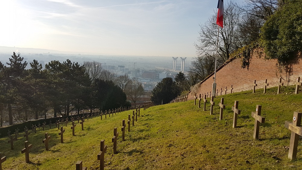 Localisation - Ligging: Cimetière de l'Ouest, rue Guillaume d'Estouteville. Begraafplaats "de l'Ouest", rue Guillaume d'Estouteville. Coordonnées GPS - GPS-coördinaten: +49°27'14.68", +1°03'53.76" Description - Beschrijving Cinq Belges reposent dans ce carré militaire français (3 de 1914-1918, 2 de 1940-1945). Vijf Belgen rusten op dit Frans militair ereperk (3 van 1914-1918, 2 van 1940-1945). Informations complémentaires - Bijkomende informatie Ce vaste cimetière se trouve sur la rive droite, il domine les quartiers se trouvant à la hauteur du 6ème pont de Rouen qui s'achève. Les soldats belges sont au milieu de leurs camarades français en haut du cimetière (Informations aimablement transmises par M. Jean BABOUX de Vernon, Eure, France). Deze grote begraafplaats bevindt zich op de rechteroever en steekt uit boven de wijken van de 6e brug van Rouen. De Belgische soldaten rusten te midden van hun Franse kameraden bovenaan de begraafplaats. Plus d'informations concernant ces personnes - Bijkomende informatie over deze gesneuvelden |