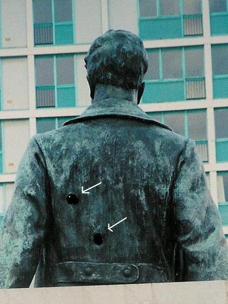 Bemerk de gaten in het standbeeld (Foto's gekregen van Alain DUBOIS en Patrick