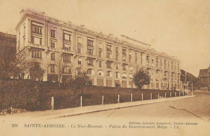 Localisation - Ligging: Sur la façade de l'immeuble du Nice havrais, place Frédéric SAUVAGE. Op de voorgevel van het gebouw "Nice havrais", place Frédéric SAUVAGE. Coordonnées GPS - GPS-coördinaten: +49°30'16.40", +0°4'50.72" Inscriptions sur le monument - Opschriften op het monument "CET IMMEUBLE FUT LE SIÈGE DU GOUVERNEMENT BELGE DE 1914 à 1918" Cette plaque commémorative ne comporte pas de noms - Er staan geen namen op deze gedenkplaat. |