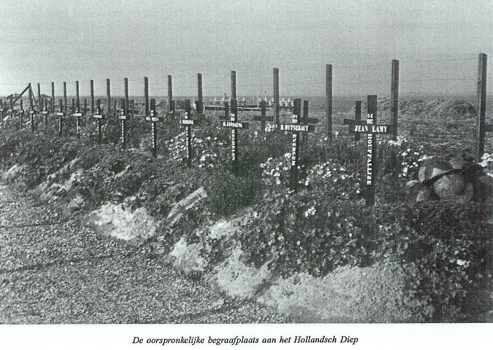 Overzicht van het massagraf aan het Hollandsch Diep, voordat het monument hier