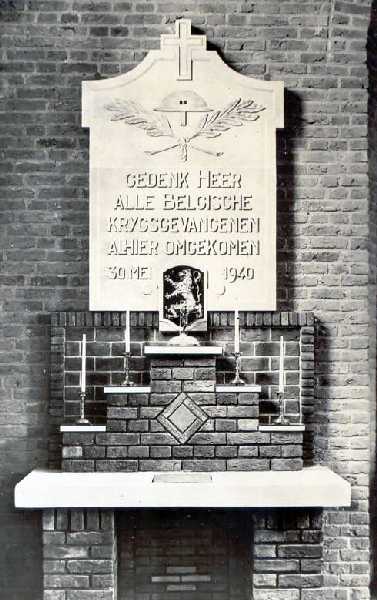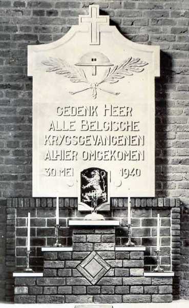 Localisation - Situering: Église. Kerk. Inscription sur la plaque - Opschrift op de plaat "[Croix - Kruis] [Casque belge et deux palmes - Belgische helm en twee palmtakken] GEDENK HEER ALLE BELGISCHE KRYGSGEVANGENEN ALHIER OMGEKOMEN 30 MEI [Blason de la Belgique - Belgisch wapen] 1940" Traduction française: Souviens-toi Seigneur de tous les prisonniers politiques belges qui on trouvé la mort ici. 30 mai 1940. Histoire - Geschiedenis Cette plaque commémorative rappelle la tragédie du "Rhenus 127", un navire plein à ras bord de prisonniers de guerre belges qui sauta sur une mine allemande le 30 mai 1940. Plus de 120 militaires belges perdirent la vie dans cette catastrophe. Deze plaat herinnert aan de ramp met de "Rhenus 127", een sleepschip vol met Belgische krijgsgevangenen dat op 30 mei 1940 op een Duitse mijn liep. Hierbij kwamen meer dan 120 Belgische militairen om. Inauguration - Onthulling: Lundi de Pentecôte 1952 par le consul de Belgique, M. A. TIEBACKX de Roosendaal (Source [45]); Tweede Pinksterdag in 1952 door de consul van België, de heer A. TIEBACKX uit Roosendaal (Bron [45]) Ce monument ne comporte pas de noms - Er staan geen namen gebeiteld op deze plaat |