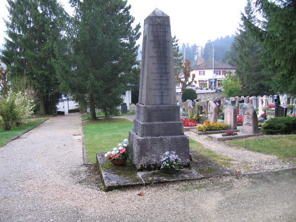 Localisation - Situering: Cimetière de Chalière, à l'intersection du chemin de la Chapelle et de la rue de Chalière. Begraafplaats "Chalière", kruispunt "chemin de la Chapelle" en "rue de Chalière". Coordonnées GPS - GPS-coördinaten: +47° 16' 25.22", +7° 21' 40.33". Deux Belge, Constantin LECLERCQ et Omer/Homère DEHAINAUT, sont mentionnés sur le monument aux morts français. Leurs tombes n'existent plus (elle ont été désaffectées après 35 ans). Twee Belgen, Constantin LECLERCQ en Omer/Homère DEHAINAUT, zijn vermeld op het Franse gedenkteken. Hun graven bestaan niet meer (zij werden na 35 jaren ontmanteld). Plus d'informations concernant ces personnes - Meer info over deze gesneuvelden |