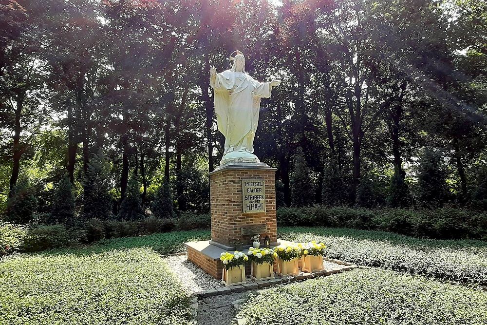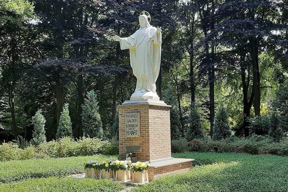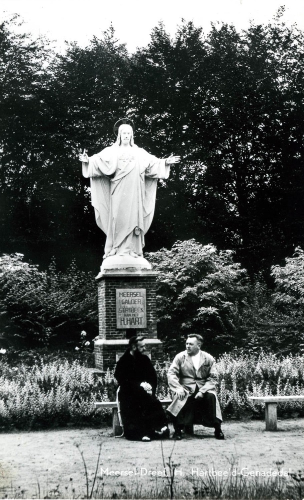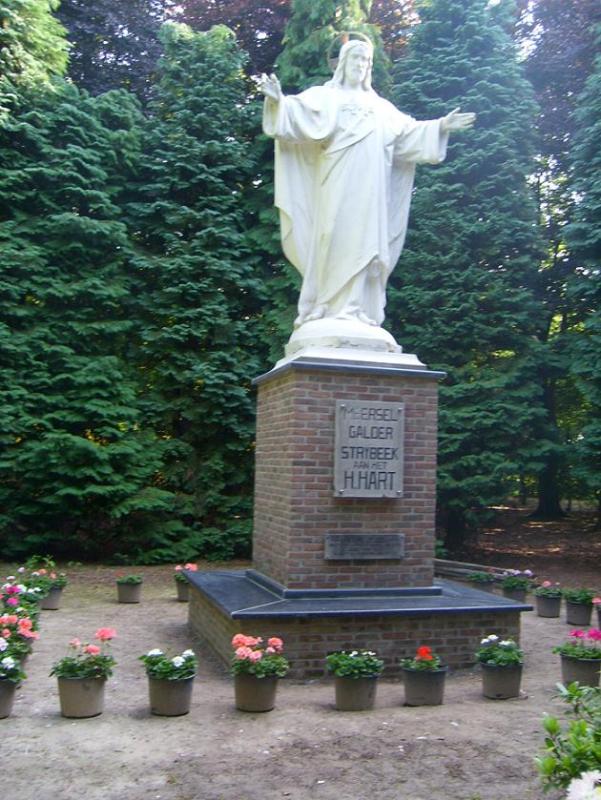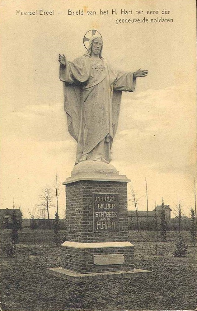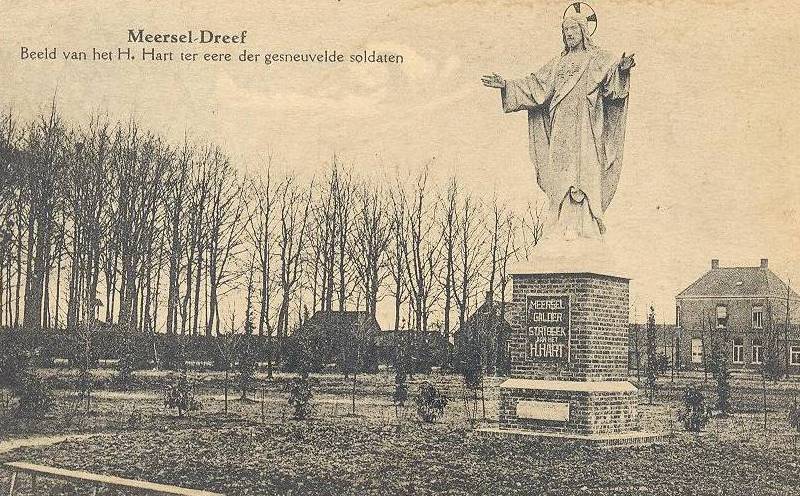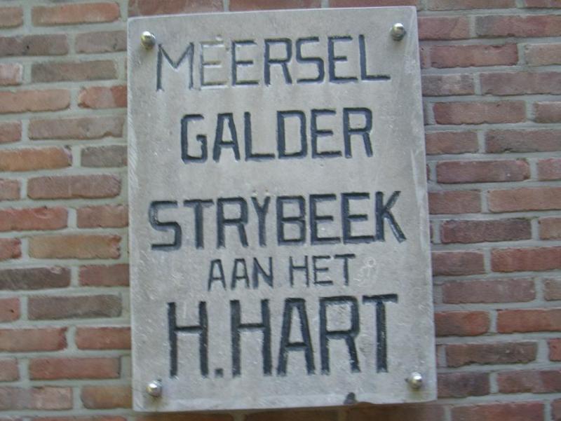 Ligging: Mariapark, Meersel-Dreef. GPS-coördinaten: +51°29'50", +4°46'29". Opschriften Plaat 1 "MEERSEL GALDER STRYBEEK AAN HET H.HART" Plaat 2 "1914 HEER JEZUS 1918 ONTFERM U ONZER GESNEUVELDEN [Drie namen]" Beeldhouwer : DE BEULE, uit Gent (Bron: "De hoogstraatse maand", nr 293, september 2009) Inwijding : 17 juni 1923 (Bron: "De hoogstraatse maand", nr 293, september 2009) Zie namen gebeiteld op de gedenkplaat |