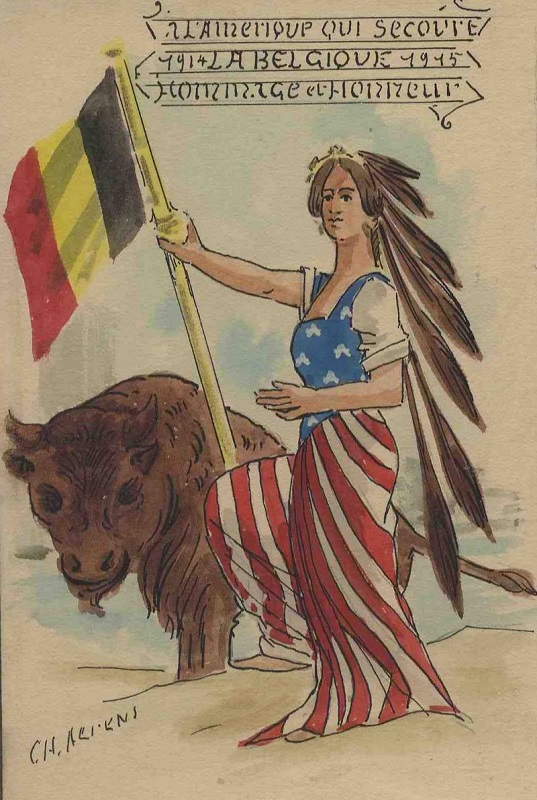 La Belgique reconnaissante aux Etats-Unis. Dessin représentant les