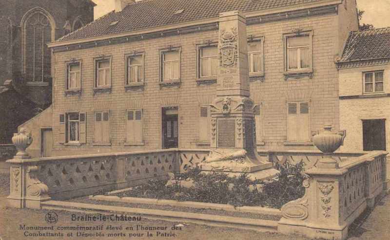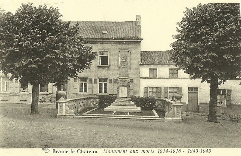 Localisation: Rue Marcel PLASMAN. Coordonnées GPS: +50°40'52.63",+4°16'11.49" Inscriptions Face avant "1914 - 1918 MORTS POUR LA PATRIE 1940 - 1945 [Seize noms, classés par ordre alphabétique, sauf les six derniers] LIBERTÉ" Côté droit "[Seize noms, classés par ordre alphabétique, sauf les deux derniers]" Côté gauche "[Seize noms, classés par ordre alphabétique, sauf l'avant-dernier] [Trois noms gravés dans la pierre, non classés par ordre alphabétique]" Face arrière "[Quinze noms, classés par ordre alphabétique, sauf le dernier]" Plaque au pied de l'arbre "ARBRE DU 30E ANNIVERSAIRE DE LA LIBÉRATION DES CAMPS BRAINE LE CHATEAU 20 - 09 - 1975" Architecte: A. PERIN. Sculpteur: F. TASSIGNON de Braine-le-Château. Remarques: - Comme le montrent les cartes postales anciennes ci-dessous, le monument a été déplacé puisqu'auparavant, il se situait Place des Martyrs. - Face au monument a été planté un arbre commémorant le 30ème anniversaire de la libération des camps. Voir les noms mentionnés sur le monument |