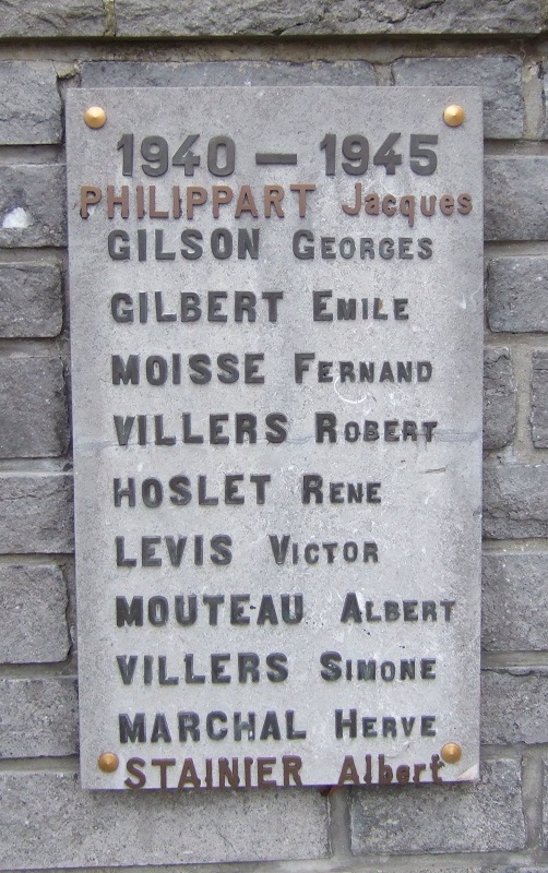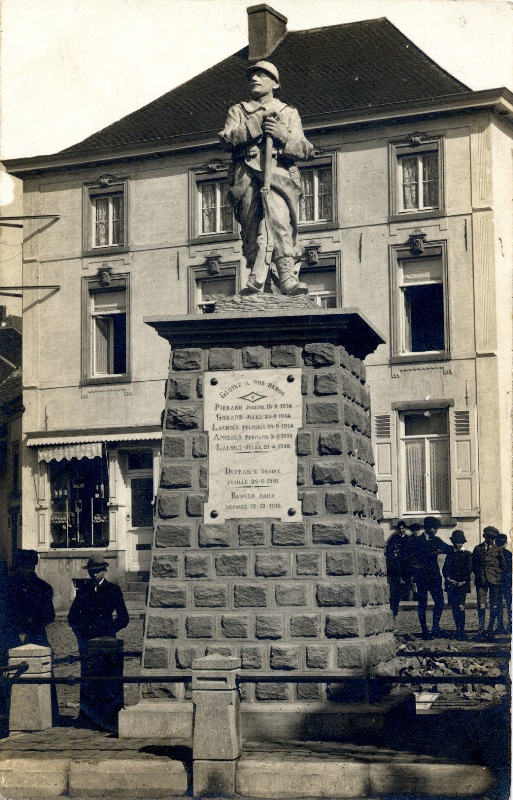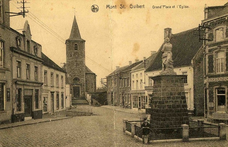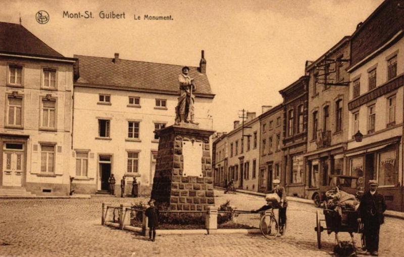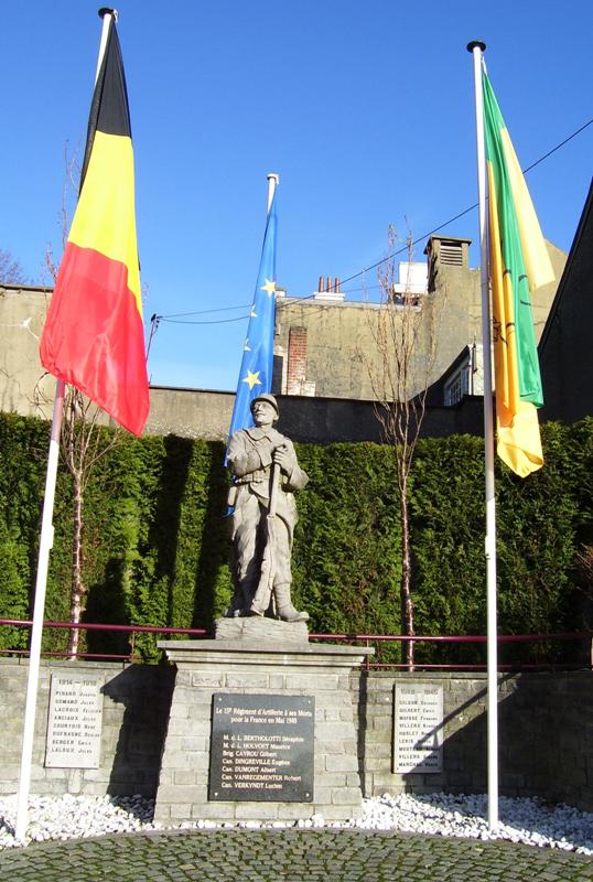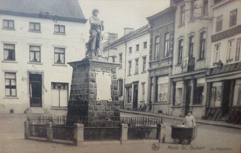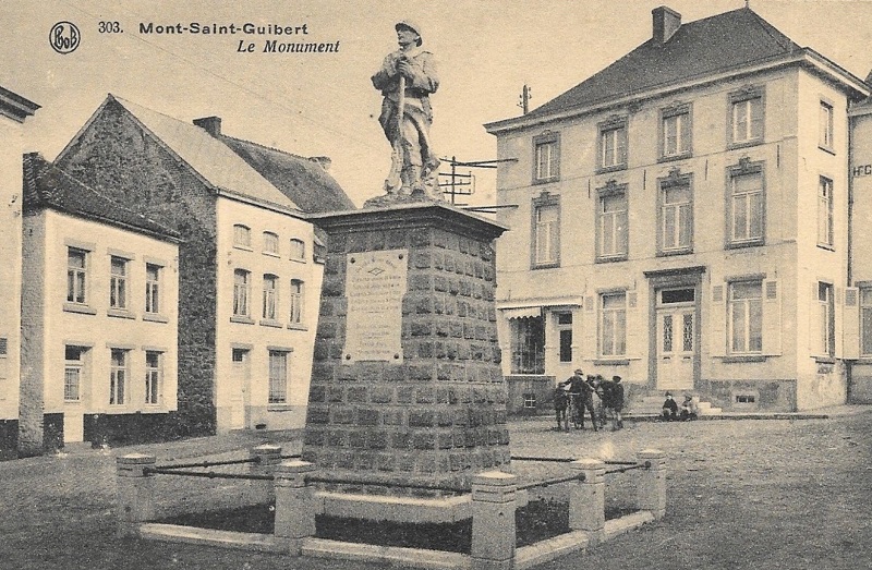 Localisation: Grand'Place. Coordonnées GPS : +50°38'04", +4°36'39" Inscriptions figurant sur ce monument Panneau sous la statue "LE 15E RÉGIMENT D'ARTILLERIE À SES MORTS POUR LA FRANCE EN MAI 1940 [Sept noms, classés d'abord par grade et ensuite, par ordre alphabétique]" Panneau de gauche "1914 - 1918 [Huit noms, non classés par ordre alphabétique]" Panneau extrême gauche "CE 11 NOVEMBRE 2012, LES DIRIGEANTS ET MEMBRES DE L'UNITÉ DES SCOUTS & GUIDES DE MONT-SAINT-GUIBERT ONT PRIS L'ENGAGEMENT SOLENNEL DE PARRAINER CE MONUMENT ET DE PERPÉTUER LE SOUVENIR DE CEUX QUI SONT MORTS POUR NOTRE PAYS." Panneau de droite "1940 - 1945 [Neuf noms, non classés par ordre alphabétique]" Informations complémentaires Pour plus d'informations sur les héros et les victimes de Mont-Saint-Guibert en 1914-1918, voir aussi la source [272]. À l'occasion des cérémonies du 11 novembre 2018, il a été procédé à la "ré-inauguration" d'une des dalles sur laquelle ont été ajoutés les noms de deux héros guibertins, à savoir Jacques PHILIPPART et Albert STAINIER. Voir les noms mentionnés sur ce monument |