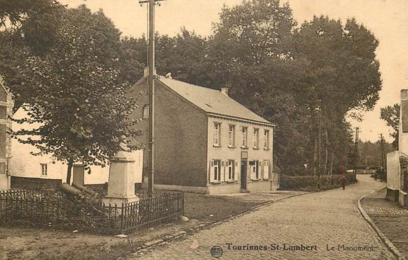 Localisation de cet ensemble: Rue des Ourdons, à quelques dizaines de mètres à droite de l'église. Coordonnées GPS: +50°38'21.48", +4°43'15.81" Inscriptions figurant sur le monument Sur la face avant du monument "1914 1918 LA COMMUNE DE TOURINNES-ST-LAMBERT RECONNAISSANTE À SES ENFANTS COMBATTANTS DÉPORTÉS" Sur une des faces latérales "14-18 [Quatre noms, non classés par ordre alphabétique]" Sur la pierre derrière le monument "1830 1930" Sur la stèle à droite du monument Partie gauche "À LA GLORIEUSE MÉMOIRE DE DEUX SOLDATS Français ET SEPT AVIATEURS BRITANNIQUES MORTS TRAGIQUEMENT SUR LE TERRITOIRE DE TOURINNES-ST-LAMBERT POUR LA GRANDE CAUSE DE LA LIBERTÉ ET DE L'INDÉPENDANCE DE NOTRE PATRIE" Partie droite "À NOS HÉROS, ENFANTS DE TOURINNES-ST-LAMBERT MORTS POUR LA PATRIE AU COURS DE LA GUERRE 1940-1945 [Cinq noms, classés par ordre alphabétique]" Remarque: La stèle 1940-1945 ne se trouvait pas à côté du monument lorsque les photos de septembre 2011 ont été prises. Cette stèle a donc été ajoutée entre septembre 2011 et août 2013. Voir les noms mentionnés sur le monument |