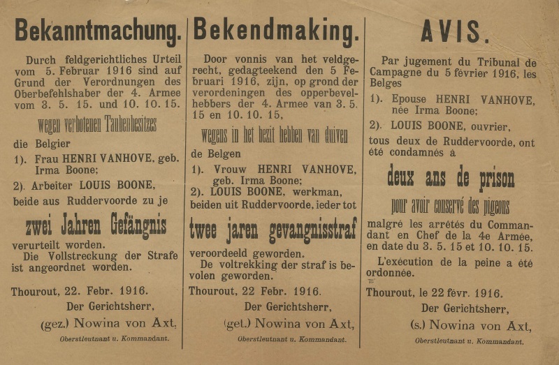 Monument voor de oorlogsduif en de duivenliefhebbers gesneuveld voor het