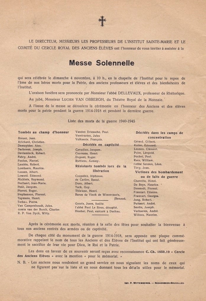 Gedenkteken voor de oud-leerlingen van het Institut Sainte-Marie gestorven voor