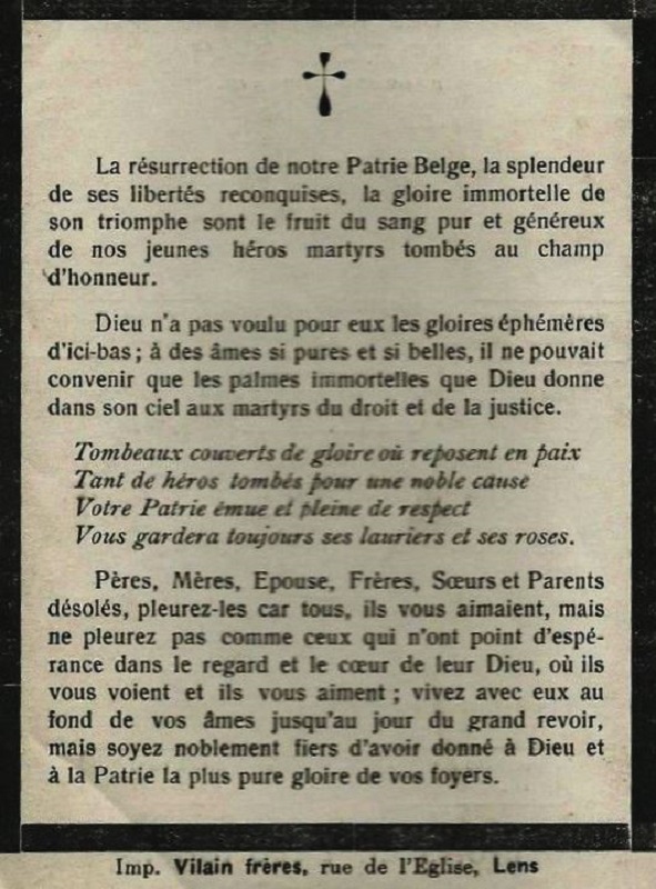 Localisation: Collection privée. Inscriptions Recto "À LA GLORIEUSE MÉMOIRE ET EN PIEUX SOUVENIR DES HABITANTS DE CAMBRON-ST-VINCENT À LEURS ENFANTS [Trois noms, classés par ordre alphabétique, avec photo et mention de la date de décès] SOLDATS MORTS POUR LA PATRIE. [Deux noms, non classés par ordre alphabétique, avec photo et mention de la date de décès] MORTS EN DÉPORTATION." Verso "[Voir scan ci-dessous]" Voir les noms mentionnés sur ce document |