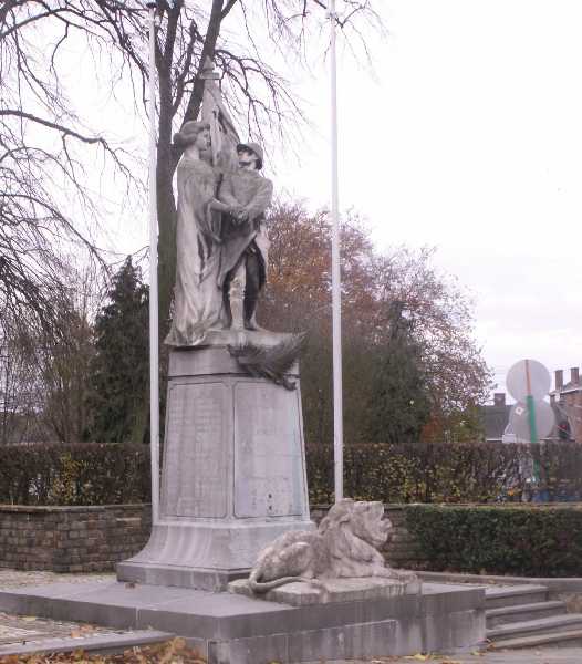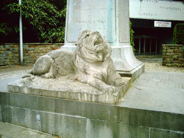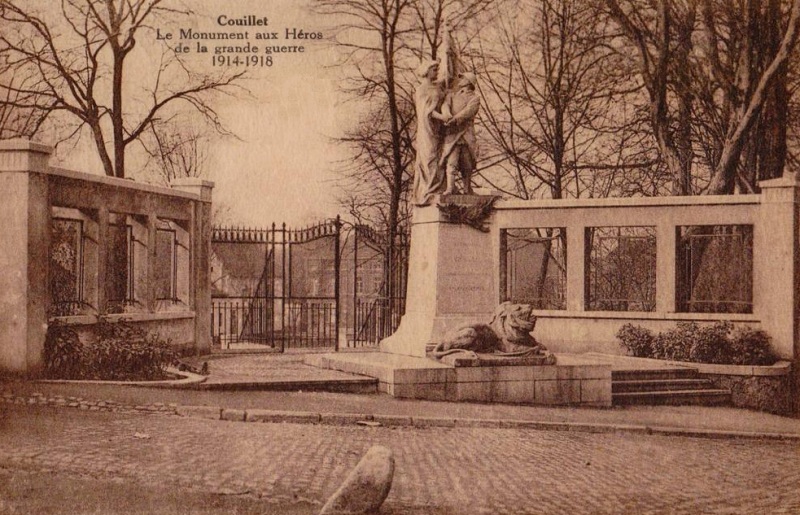 Localisation de ce monument: Place Basile Parent Inscriptions figurant sur le monument Face avant "LA COMMUNE DE COUILLET RECONNAISSANTE À SES ENFANTS MORTS POUR LA PATRIE" Sur la palme "À NOS FRÈRES MORTS POUR LA PATRIE 1914 - 1918 COUILLET F.N.C. F.N.I." Face arrière "FUSILLÉS CIVILS [Douze noms] ESPIONNAGE DES ALLIÉS TORTURÉE ET MORTE DANS UNE PRISON ALLEMANDE [Un nom] Première pierre au bas du monument "1940 - 1945 FUSILLÉS [Deux noms] DÉPORTÉS CIVILS ET POLITIQUES DÉCÉDÉS EN ALLEMAGNE [Neuf noms]" Seconde pierre au bas du monument "MORTS AU CHAMP D'HONNEUR [Sept noms] MORTS EN CAPTIVITÉ [Onze noms]" Faces latérales [Trente-quatre noms] [Trente-six noms] Voir les noms mentionnés sur ce monument |