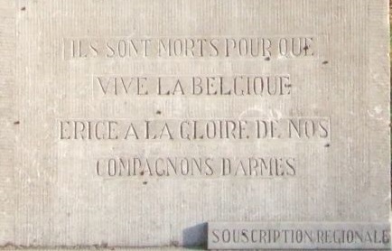 Localisation: Sur le site de la Chapelle Notre-Dame de la Cavée, chemin de la Cavée. Coordonnées GPS: N 50° 40' 30.28", E 3° 48' 16.05 Inscriptions "ARMÉE BELGE DES PARTISANS CORPS. 0.21 [Deux noms] ILS SONT MORTS POUR QUE VIVE LA BELGIQUE ÉRIGÉ À LA GLOIRE DE NOS COMPAGNONS D'ARMES SOUSCRIPTION RÉGIONALE" Voir les noms mentionnés sur le monument |