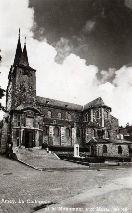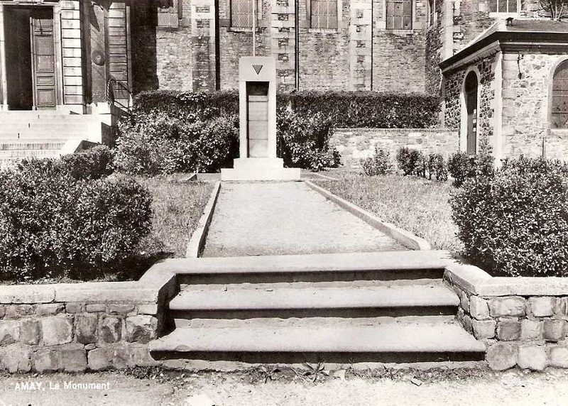 Localisation de ce monument: À proximité immédiate de la Collégiale Saint-Georges et Sainte-Ode, Place Adolphe GRÉGOIRE. Coordonnées GPS: +50°32'54.75", +5°19'05.07". Inscription figurant sur le monument Monument principal "AMAY AMPSIN FLÔNE HERMALLE S/ HUY JEHAY-BODEGNÉE OMBRET-RAUSA À LEURS ENFANTS MORTS POUR LE DROIT ET LA LIBERTÉ 1940 - 1945" Stèle "AU ROI ALBERT" Remarque Ce monument a été commandé et construit par la cellule des déportés politiques (dont l'emblème, un triangle rouge inversé, figure d'ailleurs sur le monument). (Source: Philippe MARÉCHAL) Ce monument ne comporte pas de noms de victimes de guerre |