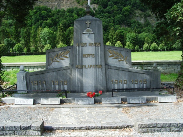 Localisation de ce monument: Cimetière de Dieupart, à côté de l'église, la grand-route menant à Remouchamps. Coordonnées GPS: 50°28'33.02" N, 5° 41'16.45" E Inscription figurant sur le monument "À NOS HÉROS MORTS POUR LA PATRIE 1914 - 1918 1940 - 1945 [Six noms]" Inauguration: 11 octobre 1931 (Source [91]) Voir les noms gravés sur le monument |