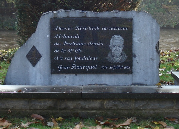 Localisation de ce monument: Dans la parc Louis Thiry entourant l'administration communale, rue de la Heid 8. Coordonnées GPS: +50° 28' 32.59", +5° 40' 36.82". Inscription figurant sur le monument "À TOUS LES RÉSISTANTS AU NAZISME À L'AMICALE DES PARTISANS ARMÉS DE LA 31E CIE ET À SON FONDATEUR JEAN BOURGUET 1945 30 JUILLET 1995" Plus d'informations concernant la personne mentionnée sur ce monument |
