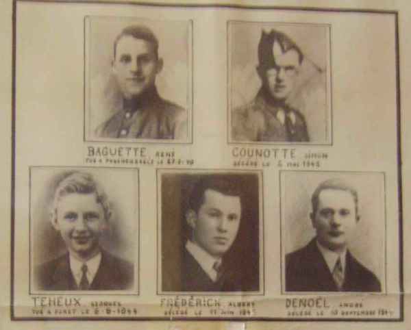 Localisation de l'ensemble: Dans un local sur le site du Fort de Barchon, rue du Fort. Coordonnées GPS: +50°40'20.41", +5°41'24.76". Inscription figurant sur les objets Sur la photo-souvenir "HOMMAGE À NOS GLORIEUX MORTS ET À NOS CHERS PRISONNIERS COMMUNE DE BARCHON 1940 - 1945 [En encadré, cinq noms de soldats morts en 40-45, avec photos, non classés par ordre alphabétique]" [Vingt-et-un noms, non classés par ordre alphabétique]" Sur le 1er drapeau "FÉDÉRATION NATIONALE DES ANCIENS PRISONNIERS DE GUERRE 1940 1945 ST RÉMY ET ENVIRONS" Sur le 2ème drapeau "HONNEUR-PATRIE 1940 FNC 1945 ST.RÉMY - BLEGNY" Sur le tableau "1914 1918 [Vingt-deux noms, sur deux colonnes, non classés par ordre alphabétique] 1940 1945 [Seize noms, sur deux colonnes, non classés par ordre alphabétique]" Voir les noms mentionnés sur la photo et sur le tableau |
