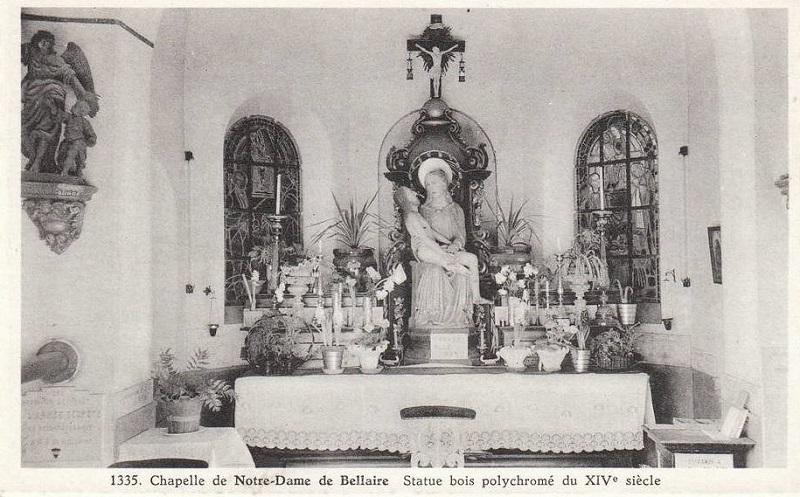 Localisation: Chapelle Notre Dame de la Visitation, rue de l'Église, adossée à l'église. Coordonnées GPS: +50°38'41.51", +5°39'56.86". Inscriptions Vitrail "[Neuf noms, non classés par ordre alphabétique] MERCI À ND DE BELLAIRE" Ex-voto "À N.D. DE BELLAIRE EN REMERCIEMENTS POUR AVOIR ÉCHAPPÉ À LA FUSILLADE ALLEMANDE LE 7/9/44 [Neuf noms, non classés par ordre alphabétique]" "REMERCÏMENT À N.D. DE BELLAIRE PR SA PROTECTION CONTRE LES V" "LES RESCAPÉS DE FORÊT EN RECONNAISSANCE À N.D. DE BELLAIRE" "MERCI À N.D. DE BAIRE UN CHEF RÉCHAPPÉ DE FORÊT" Pour en savoir plus sur ces journées de septembre 1944: cliquer ici Voir les noms mentionnés sur le vitrail (les noms mentionnés sur les ex-voto sont les mêmes) |