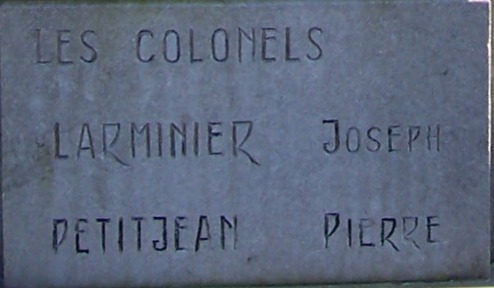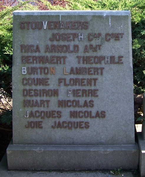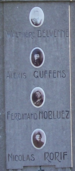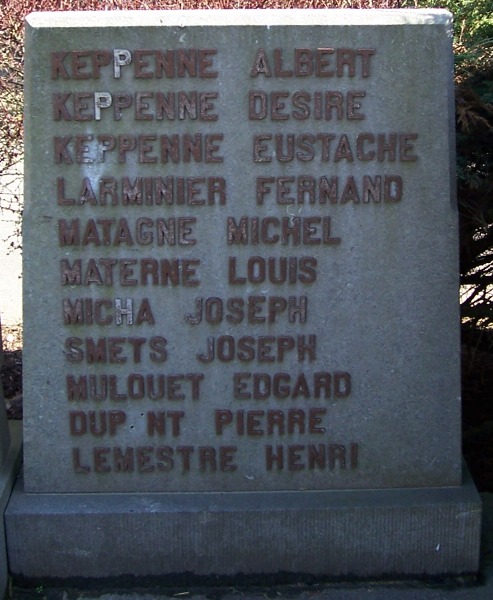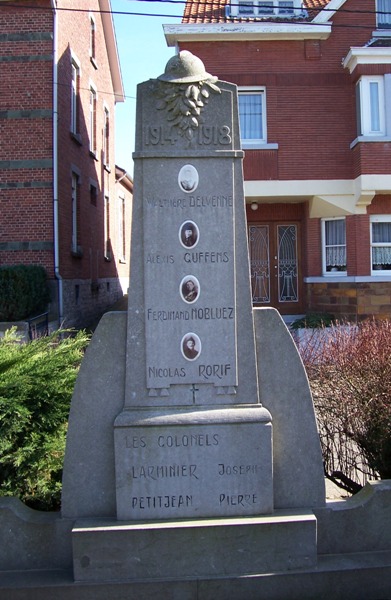 Localisation de ce monument: Au coin de la rue Louis MARÉCHAL et rue Sous la Motte. Coordonnées GPS: +50° 42'58.56", +5° 19' 48.26". Inscription figurant sur le monument Monument central "1914 - 1918 [Quatre noms, non classés par ordre alphabétique, avec photo en médaillon]" LES COLONELS [Deux noms, classés par ordre alphabétique]" Stèle gauche "[Dix noms, classés d'abord par grade et ensuite par ordre alphabétique]" Stèle droite "[Onze noms, classés par ordre alphabétique faisant suite logique avec les noms de la stèle gauche, avec deux exceptions en fin de liste]" Voir les noms mentionnés sur ce monument |