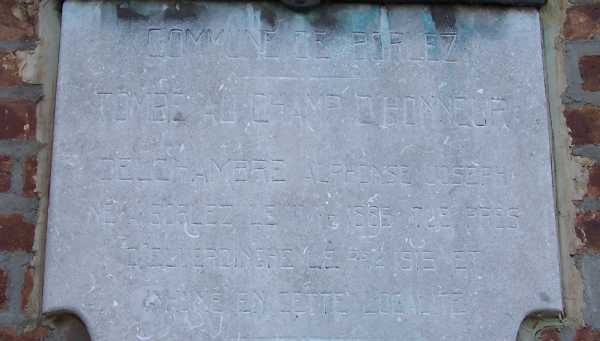 Localisation de ce monument: Rue Albert 1er, sur une maison à l'entrée du village. Coordonées GPS: 50° 37' 55" N, 5° 15' 01" E (carrefour Rue Albert 1er et rue d'Aineffe). Inscription figurant sur le monument "N'OUBLIONS JAMAIS 1914 - 1918 COMMUNE DE BORLEZ TOMBÉ AU CHAMP D'HONNEUR [Un nom]" Plus d'informations concernant cette personne |