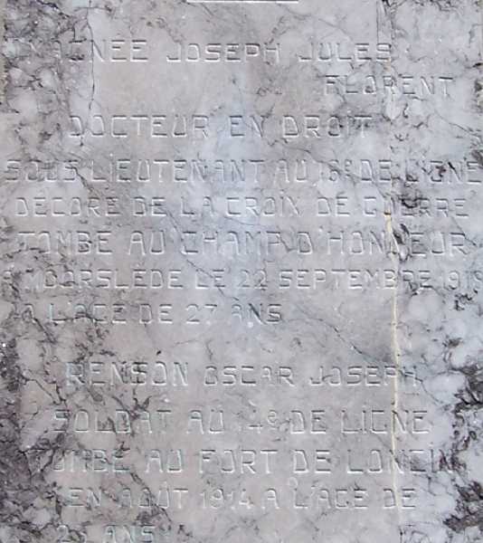 Localisation de ce monument: Rue Oscar RENSON, au coin du chemin qui monte vers l'église. Coordonnées GPS: +50°38'51", +5°19'13". Inscription figurant sur le monument "N'OUBLIONS JAMAIS 1914 - 1918 COMMUNE DE DONCEEL [Deux noms]" Voir les noms mentionnés sur ce monument |