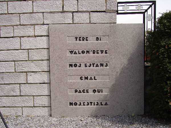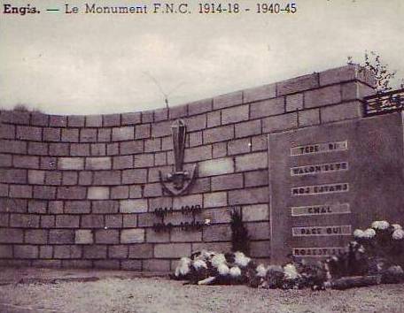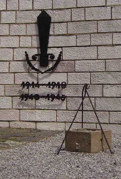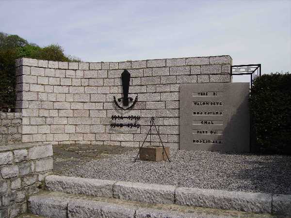 Localisation de ce monument: Sur le mur du cimetière, face à l'hôtel de ville, rue Reine Astrid. Coordonnées GPS: 50° 34' 58.00" N, 5° 24' 15.22" E. Inscription figurant sur ce monument "1914 - 1918 1940 - 1945 TÉRE DI WALON'REYE NOS ESTANS CHAL PACE QUI NOS.ESTIS.LA." Traduction: Terre de Wallonie, nous sommes ici parce que nous sommes allés là-bas. Inscription figurant sur la plaque à droite du monument "65ème ANNIVERSAIRE DE LA LIBÉRATION D'ENGIS SEPTEMBRE 1944 - SEPTEMBRE 2009" Ce monument ne comporte pas de noms |