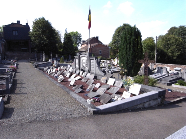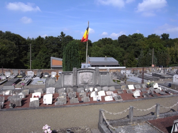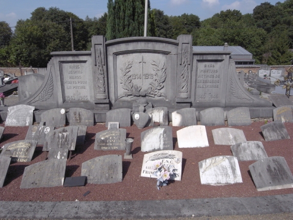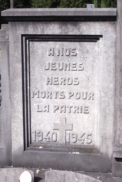 Localisation de ce monument: Cimetière communal de Esneux, Rue du Cimetière. Coordonnées GPS: +50° 32' 6.00", +5° 34' 48.49". Inscription figurant sur le monument Panneau central "1914 - 1918" Panneau gauche "À NOS JEUNES HÉROS MORTS POUR LA PATRIE 1940 - 1945" Panneau droit "À NOS MARTYRS VICTIMES DE LA BARBARIE ALLEMANDE 1940 - 1945" Ce monument ne comporte pas de noms |