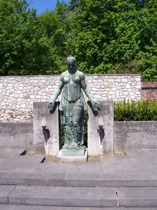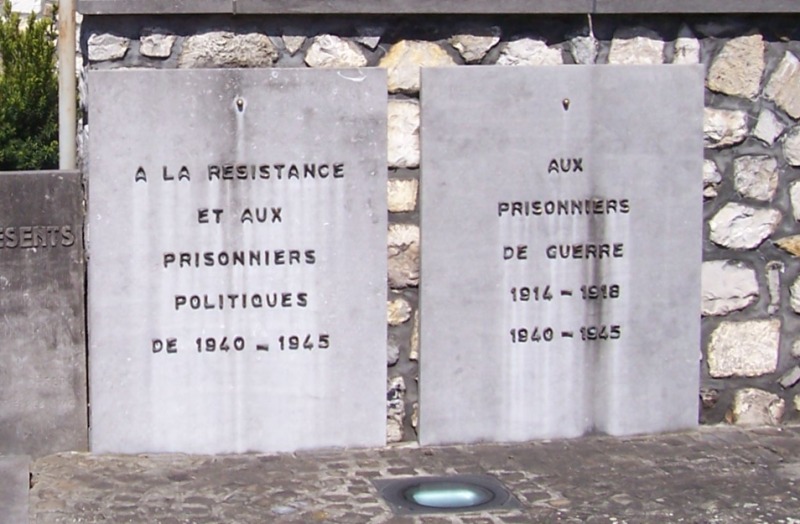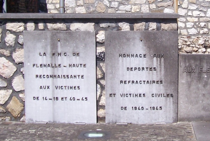 Localisation de ce monument: Grande Route à côté de la maison communale. Coordonnées GPS: +50° 35' 56.70", +5° 28' 07.82" Inscriptions figurant sur le monument Monument central de part et d'autre de la statue Partie gauche "1914 - 1918 AUX FLÉMALLOIS TOMBÉS POUR LA LIBERTÉ" Partie droite "1940 - 1945 VOUS RESTEREZ PARMI NOUS INVISIBLES ET PRÉSENTS" Panneaux latéraux de gauche "LA F.N.C. DE FLÉMALLE-HAUTE RECONNAISSANTE AUX VICTIMES DE 14-18 ET 40-45" "HOMMAGE AUX DÉPORTÉS RÉFRACTAIRES ET VICTIMES CIVILES DE 1940 - 1945" Panneaux latéraux de droite "À LA RÉSISTANCE ET AUX PRISONNIERS POLITIQUES DE 1940 - 1945" "AUX PRISONNIERS DE GUERRE 1914 - 1918 1940 - 1945" Réalisation: Sculpteur: M.L. ROMIÉE-BRICTEUX (49); PETERS, Pierres, Ivoz; D. PIERLOT, architecte (Signé) Ce monument ne comporte pas de noms |
