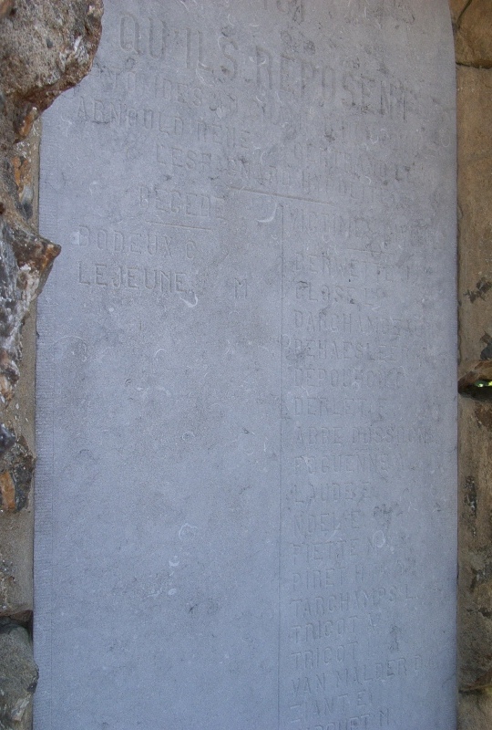 Localisation: Cimetière communal, rue de Neuville. Coordonnées GPS: +50°27'13.23", +5°56'56.53" Inscriptions "PAIX COMBATTANTS 1914 - 1918 C'EST ICI QU'ILS REPOSENT TOMBÉS AU CHAMP D'HONNEUR [Trois noms, classés par ordre alphabétique] DÉCÉDÉS [Deux noms, classés par ordre alphabétique] VICTIMES CIVILES [Dix-huit noms, classés par ordre alphabétique sauf un]" Voir les noms gravés sur le monument |