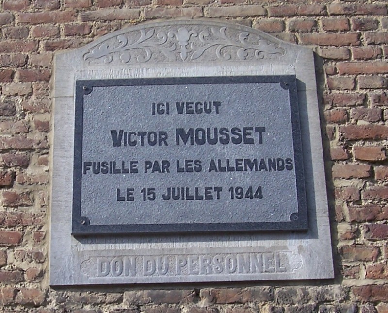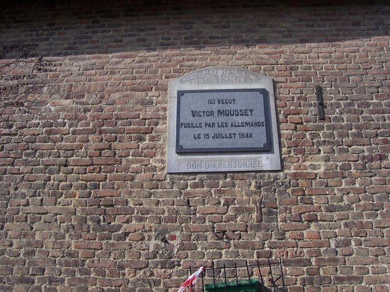 Localisation: Rue du Village. Coordonnées GPS: +50°35'05.85", +5°10'59.08". Inscriptions "ICI VÉCUT VICTOR MOUSSET FUSILLÉ PAR LES ALLEMANDS LE 15 JUILLET 1944 DON DU PERSONNEL" Plus d'informations concernant cette personne |