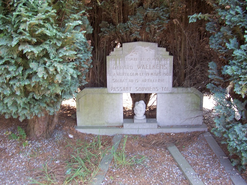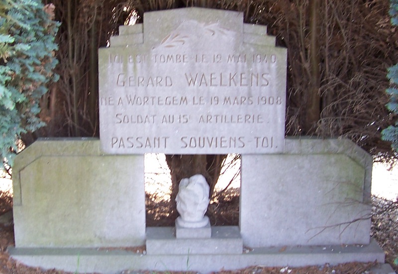 Localisation de ce monument: Croisement des rues Gérard WAELKENS, Joseph LEPAGE et rue d'Or. Coordonnées GPS: +50° 40' 8.35", +5° 10' 9.59" Inscription figurant sur le monument "ICI EST TOMBÉ LE 12 MAI 1940 GERARD WAELKENS NÉ À WORTEGEM LE 19 MARS 1908 SOLDAT AU 15E ARTILLERIE PASSANT SOUVIENS-TOI" Plus d'informations concernant cette personne |