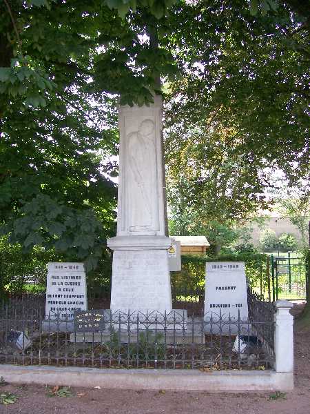 Localisation de ce monument: Au carrefour des rues Tombeux, du Ruisseau, Ribatte et des Templiers. Coordonnées GPS: 50° 38' 19.00" N, 5° 19' 12.00" E. Inscription figurant sur le monument Monument central "À NOS BRAVES 1914 - 1918 MORTS POUR LA PATRIE [Deux noms]" Stèle de gauche "1940 - 1945 AUX VICTIMES DE LA GUERRE À CEUX QUI ONT SOUFFERT POUR QUE CHACUN DE NOUS GARDE SA DIGNITÉ" Stèle de droite "1940 - 1945 PASSANT SOUVIENS-TOI" Plaque commémorative au pied du monument "AUX VICTIMES DE LA GUERRE DONCEEL SE SOUVIENT LE 08 - 05 - 2005" Voir les noms mentionnés sur ce monument |