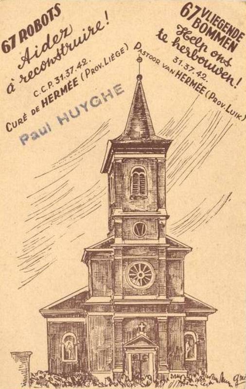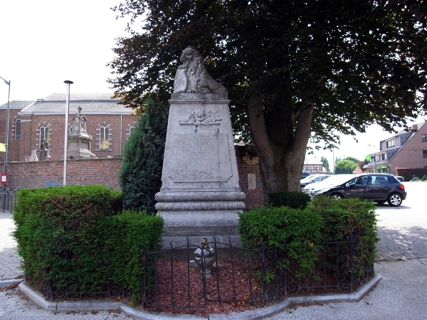 Localisation de ce monument: Place du Carcan, au coin de la rue Neuve et de la rue de la Tour. Coordonnées GPS: +50° 42' 34.61", +5° 37' 06.79". Inscription figurant sur le monument Face avant "1914-1918 LA COMMUNE DE HERMÉE À SES HÉROS TOMBÉS POUR LA DÉFENSE DE L’HONNEUR ET DES FOYERS DU PEUPLE BELGE [Cinq noms, classés par ordre alphabétique] MORTS SOUS LES ARMES [Douze noms, classés par ordre alphabétique] ASSASSINÉS PAR L’OPPRESSEUR DE NOS DROITS ET LIBERTÉS" Face arrière "A NOS GLORIEUX COMBATTANTS DE LA GRANDE GUERRE 1914-1918 [Cinquante-quatre noms, répartis sur deux colonnes et classés par ordre alphabétique]" Face latérale gauche "1940 - 1945 [Trente noms, classés par ordre alphabétique]" Face latérale droite "[Trente-et-un noms de 1940-1945, classés par ordre alphabétique]" Plaque commémorative du passage de l'armée américaine (sur le mur d'enceinte du cimetière, juste derrière le monument aux morts) "CE VILLAGE A HÉBERGÉ EN FÉVRIER 1945 L'UNITÉ AMÉRICAINE "761 ST TANK BATTALION". N'OUBLIONS PAS QUE CES SOLDATS ONT CONTINUÉ LEUR AVANCE VERS L'ALLEMAGNE ET ONT PARTICIPÉ ENSUITE À LA LIBÉRATION DES CAMPS D'EXTERMINATION. PASSANT, SOUVIENS-TOI !" Voir les noms mentionnés sur ce monument |