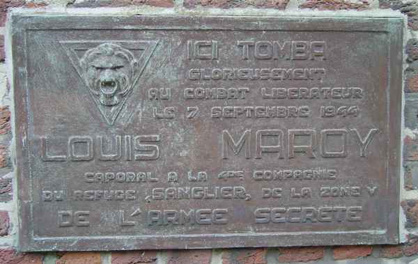 Localisation de ce monument: À l'entrée du dépôt des autobus de la ligne Liège-Verviers, rue Gustave BAIVY. Coordonnées GPS: +50° 36' 47.84", +5° 29' 53.28". Inscription figurant sur le monument "ICI TOMBA GLORIEUSEMENT AU COMBAT LIBÉRATEUR LE 7 SEPTEMBRE 1944 LOUIS MAROY CAPORAL À LA 4ÈME COMPAGNIE DU REFUGE "SANGLIER" DE LA ZONE V DE L'ARMÉE SECRÈTE" Plus d'informations concernant cette personne |