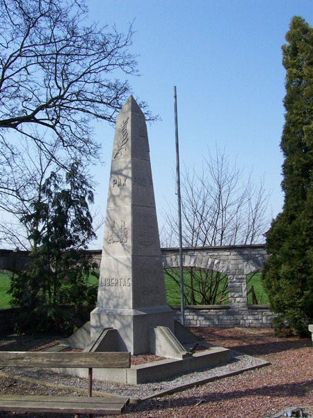 Localisation de ce monument: Rue du Monument. Coordonnées GPS: +50°39'16.04", +5°07'59.31". Inscription figurant sur le monument "PAX LIBERTAS PRO PATRIA 1914 - 1918 1940 - 1945" Ce monument ne comporte pas de noms |
