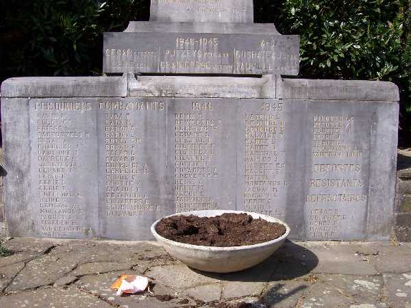 Localisation de ce monument: Coin de la rue Hubert KRAINS et de la rue de Celles . Coordonnées GPS: 50°38'23"N, 5°13'10"E. Inscription figurant sur le monument "AUX VAILLANTS COMBATANTS À NOS / HÉROS |