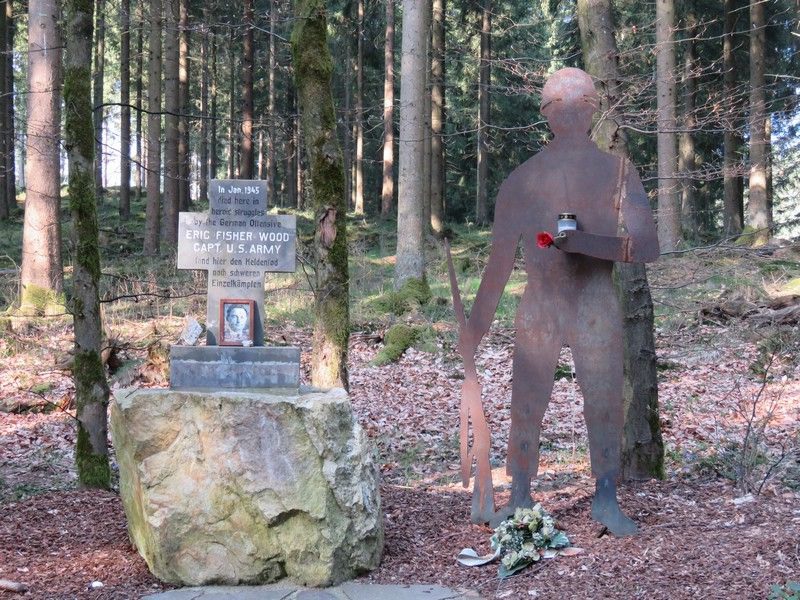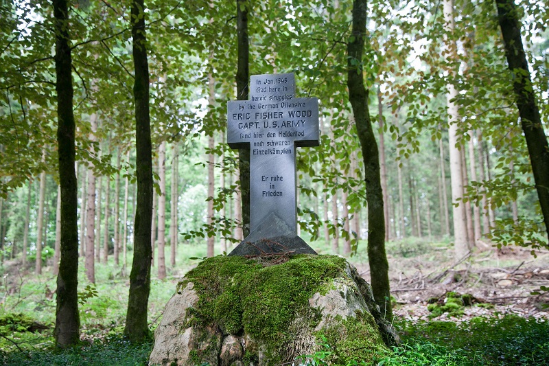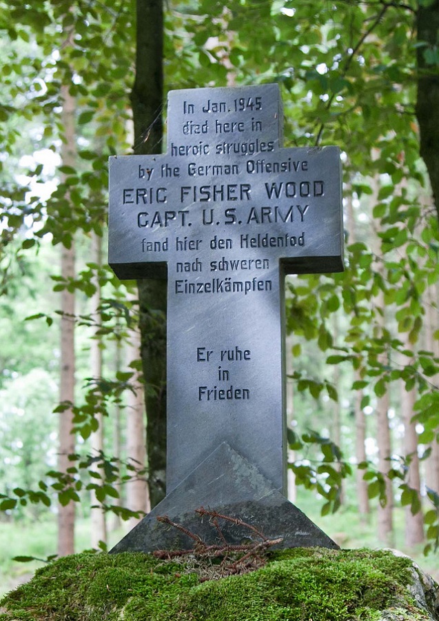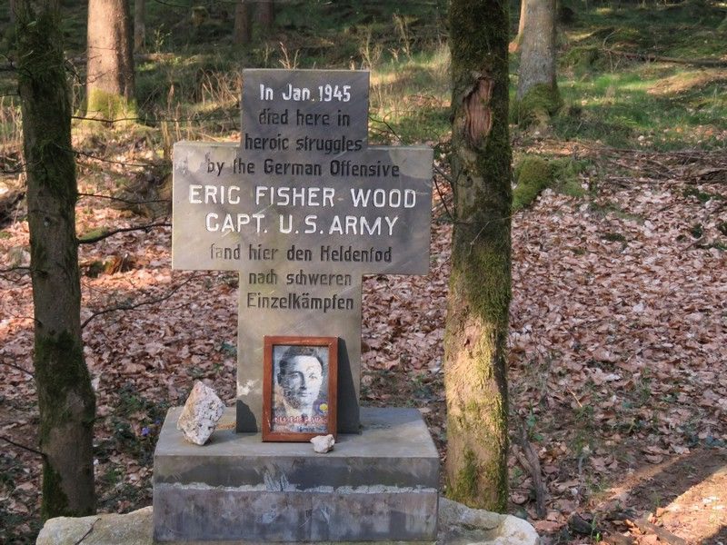Localisation: Le long de la route qui relie Meyerode à Eiterbach. Coordonnées GPS: +50°18'04.2", +6°11'42.3" Inscriptions "IN JAN. 1945 DIED HERE IN HEROIC STRUGGLES BY THE GERMAN OFFENSIVE ERIC FISHER WOOD CAPT. U.S. ARMY FAND HIER DEN HELDENTOD NACH SCHWEREN EINZELKÄMPFEN ER RUHE IN FRIEDEN" Traductions Texte anglais Ici est mort, en janvier 1945, Eric Fisher WOOD, capitaine de l'armée américaine, lors de combats héroïques pendant l'offensive allemande. Texte allemand Eric Fisher WOOD, capitaine de l'armée américaine, est mort ici en héros après des combats singuliers acharnés. Qu'il repose en paix. Plus d'informations concernant ce soldat |