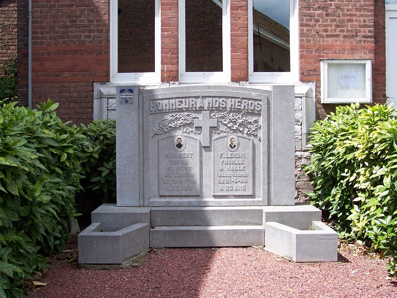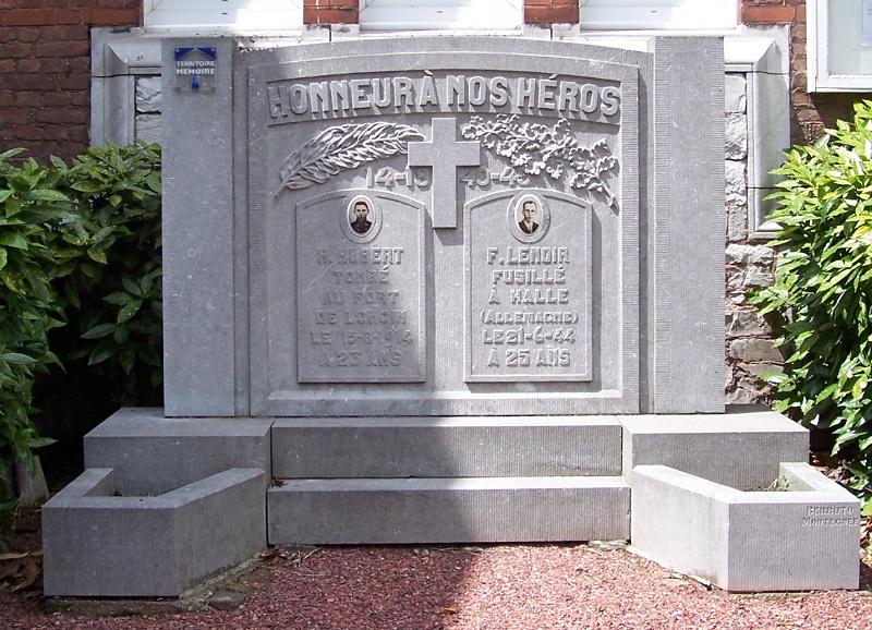 Localisation: Rue principale, devant l'ancienne maison communale. Coordonnées GPS: +50°39'37", +5° 22' 57" Inscriptions "HONNEUR À NOS HÉROS 14 - 18 40 - 45 [Deux noms, avec photo et mention de l'âge ainsi que des dates et lieux de décès]" Réalisation: BERBUTO (Montegnée) (signé). Voir les noms mentionnés sur ce monument |