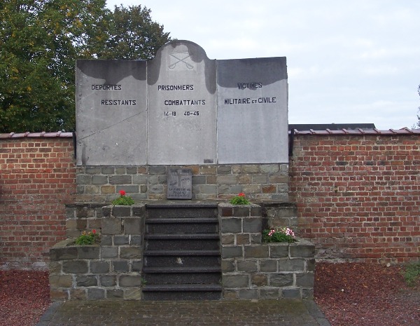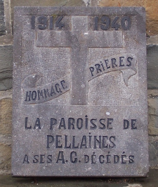 Localisation: Devant le cimetière, rue des Alliés. Coordonnées GPS: +50°43'34.52", +5°00'25.96" E. Inscription figurant sur le monument "DÉPORTÉS RÉSISTANTS PRISONNIERS COMBATTANTS VICTIMES MILITAIRE ET CIVILE 14-18 40-45" "1940 1940 HOMMAGE - PRIÈRES LA PAROISSE DE PELLAINES À SES A.C. DÉCÉDÉS" Ce monument ne comporte pas de noms |