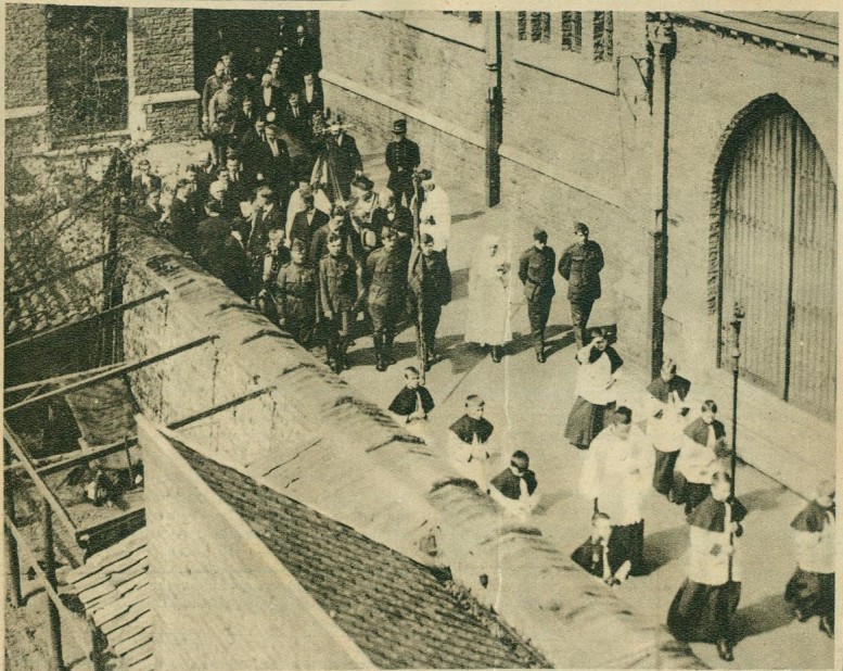 On voit ici l'arrivée du cortège funéraire dans les rues de